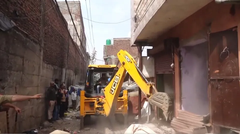 JAMMU, April 23, 2026 : In a strong action against drug trafficking, the administration on Thursday demolished three houses belonging to alleged drug peddlers in the Rajiv Nagar area.
